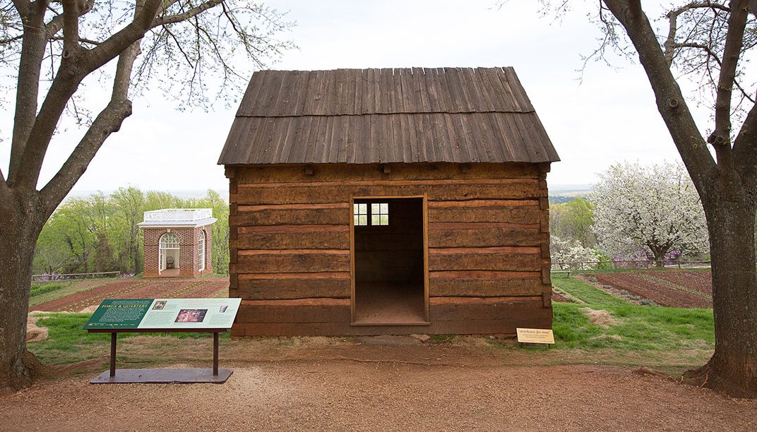 Image © Thomas Jefferson Foundation at Monticello: Reconstruction of a building along Mulberry Row at Monticello that served as an iron storehouse and slave quarters.