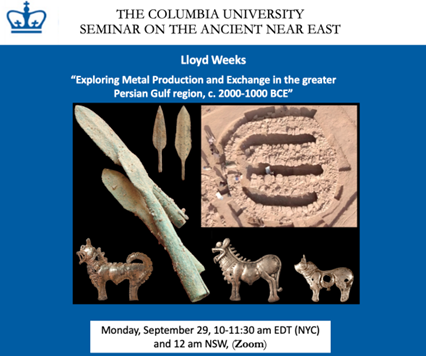 Lloyd Weeks, University of New England, Australia “Exploring Metal Production and Exchange in the greater Persian Gulf region, c. 2000-1000 BCE”